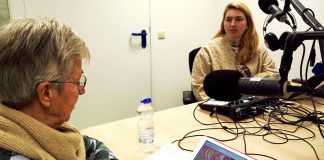 Irene Wilkens en Riemke Bakker in de studio voor opnames Wiesneus...